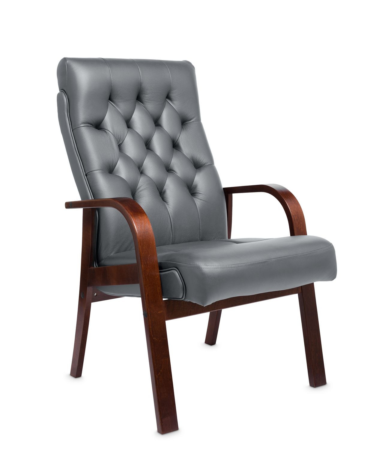 Кресло для посетителей Darwin D Кожа Серый + к/з/темный орех