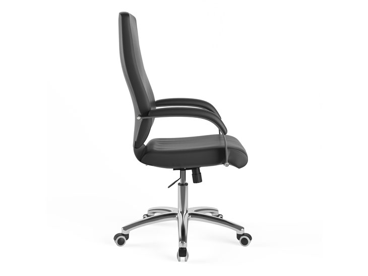 Кресло Tatra предлагает интересное сочетание классики и элементов хай-тека. В его дизайне прекрасно сочетаются функциональность, утонченность и солидность. Посадочное место имеет монолитную основу, на которой зафиксирована спинка и сиденье с обивкой из экокожи. По бокам располагаются скошенные металлические подлокотники с мягкими накладками. Визуальную легкость модели придает невесомый каркас, который контрастируют блеском хрома с черным верхом. Лаконичность форм и отделки подчеркивает практичность кресла и позволяет интегрировать его в различные стили интерьера.