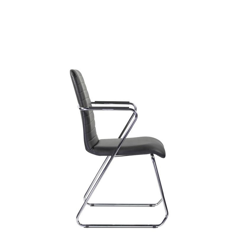 Уникальный каркас из металла и узкие подлокотники с небольшими накладками придают конструкции легкость и прочность. Горизонтальные строчки на спинке подчеркивают элегантный внешний вид. Хромированный каркас выдерживает до 120 кг.