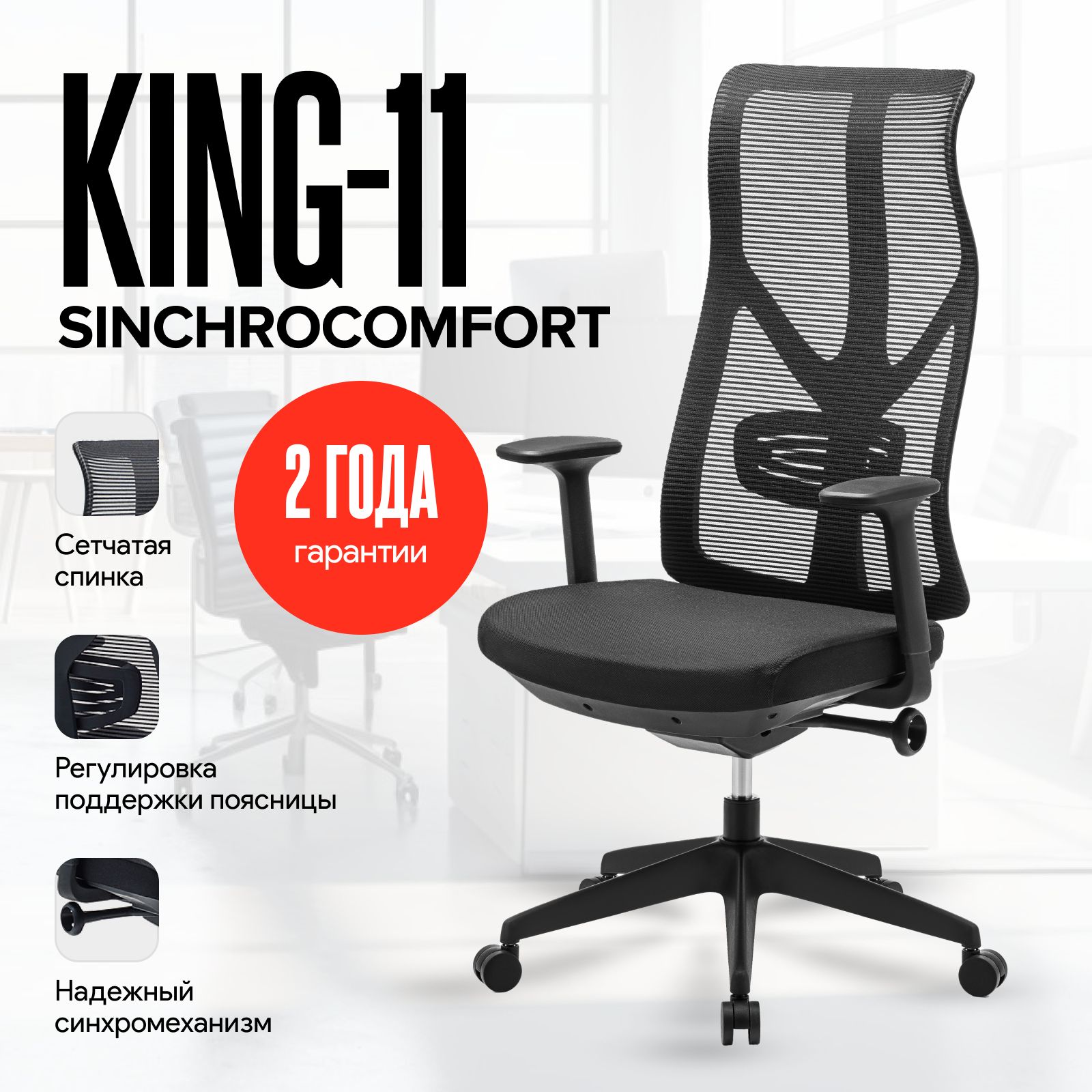 Кресло King-11 (Кинг-11) Синхрокомфорт, 150 кг, Черный