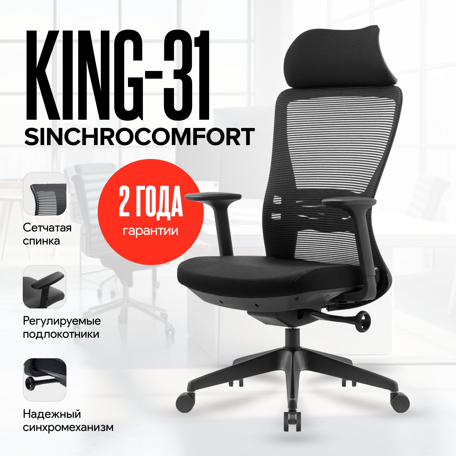 Кресло King-31 (Кинг-31) Синхрокомфорт, 150 кг, Черный