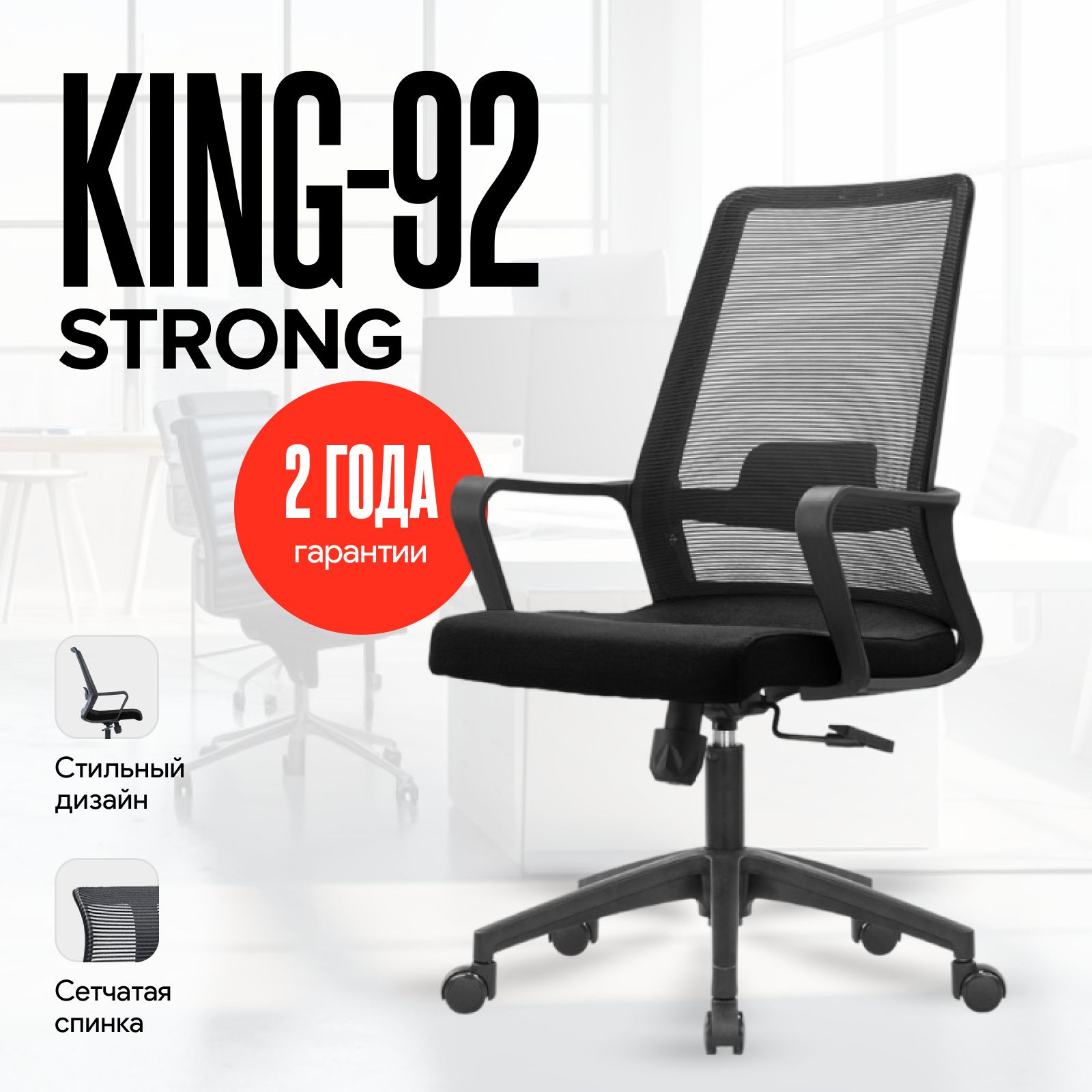 - King-92 — с низкой спинкой для прерывистой сидячей работы,