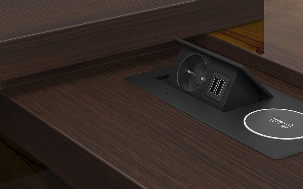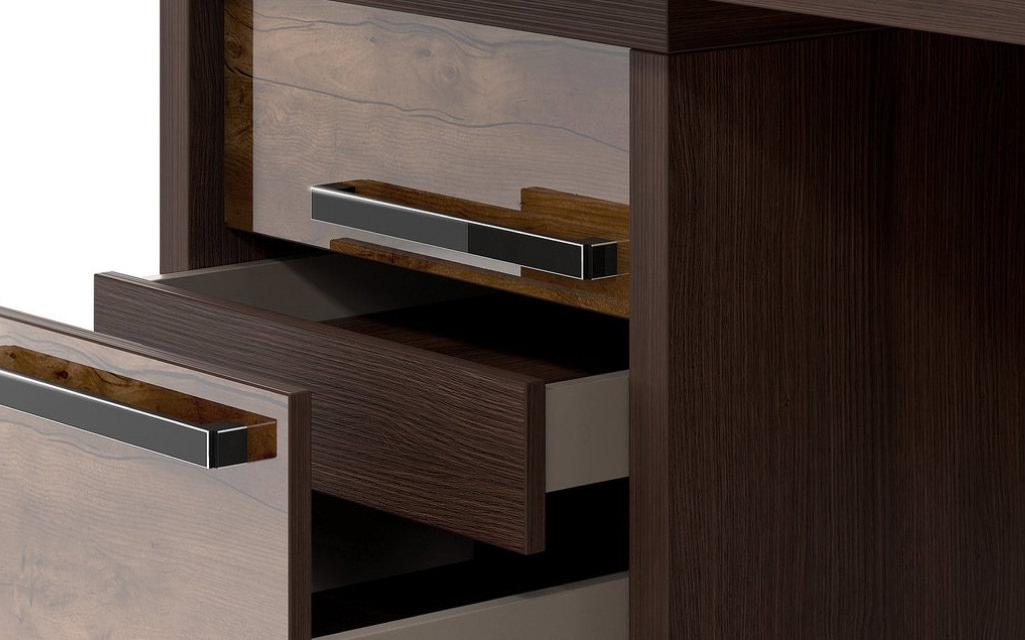 Grace Native | Природная Грация – вершина престижа, мастерски подчеркивает утонченный вкус владельца. Богатство цветовой палитры – от изысканного белого до благородных темных оттенков, включая эффектные двухцветные решения – воплощает любую концепцию оформления. Встроенные модули подключения и выдвижные ящики с металлическими ручками обеспечивают высокую функциональность.