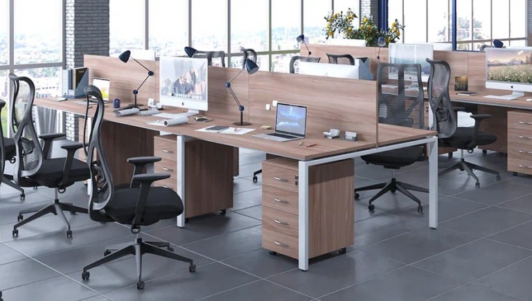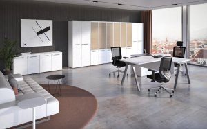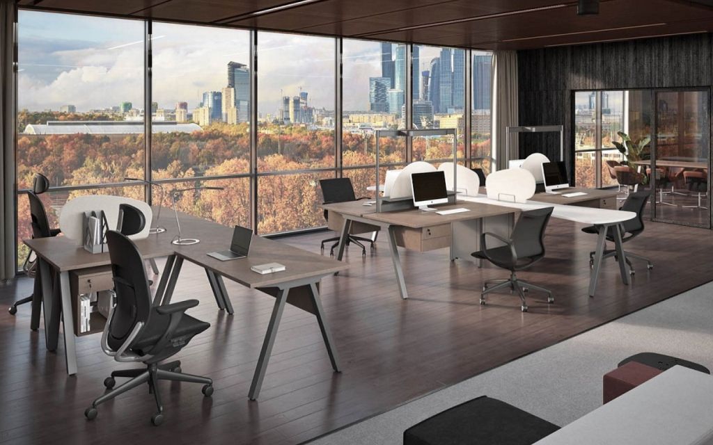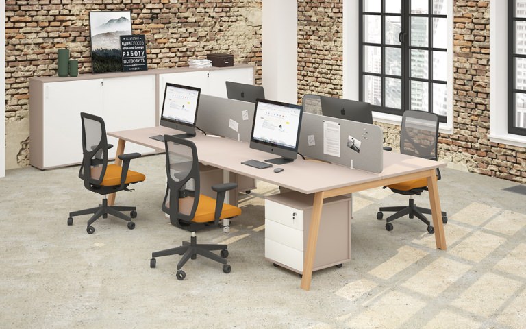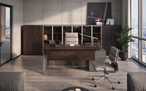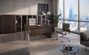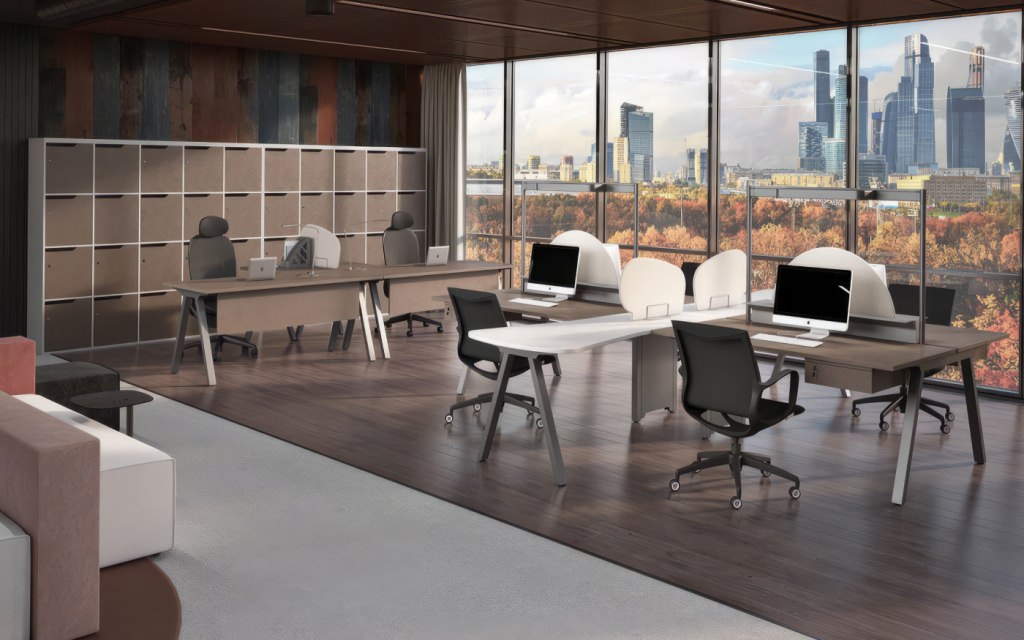 Линия включает столы руководителя с опорными тумбами, брифинг-приставки, комфортные рабочие места, подвесные ящики с разными конфигурациями, мобильные тумбы и разнообразные шкафы со стеллажами. Палитра цветов – благородный Антрацит и элегантный Серый камень – подчеркивает архитектуру пространства. Российское производство обеспечивает стабильное качество материалов и точность исполнения каждой детали.