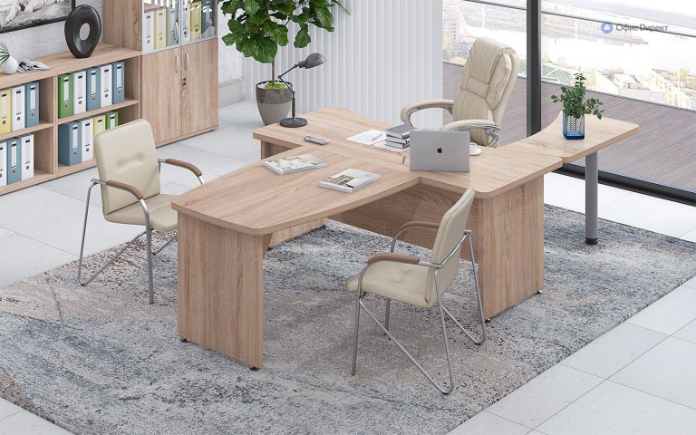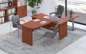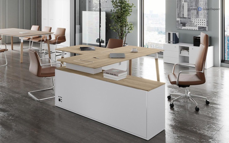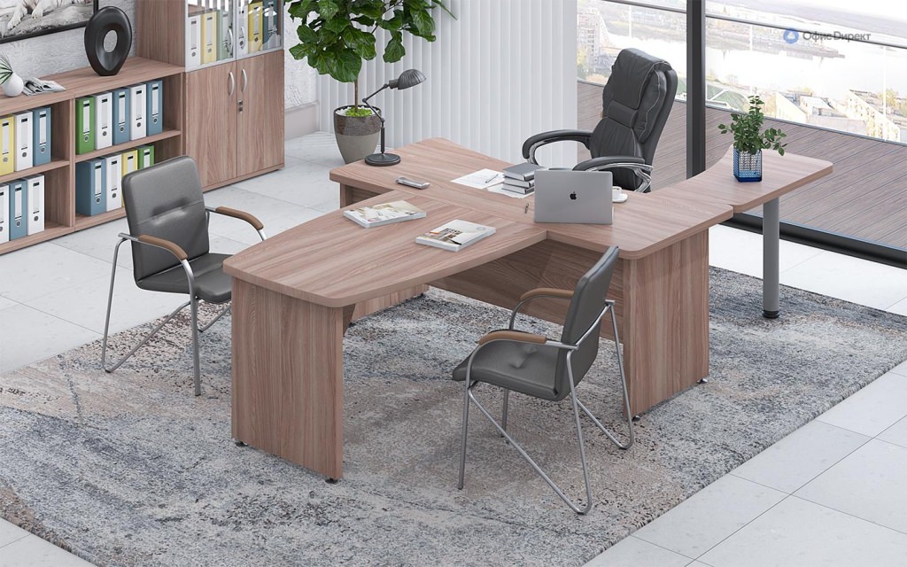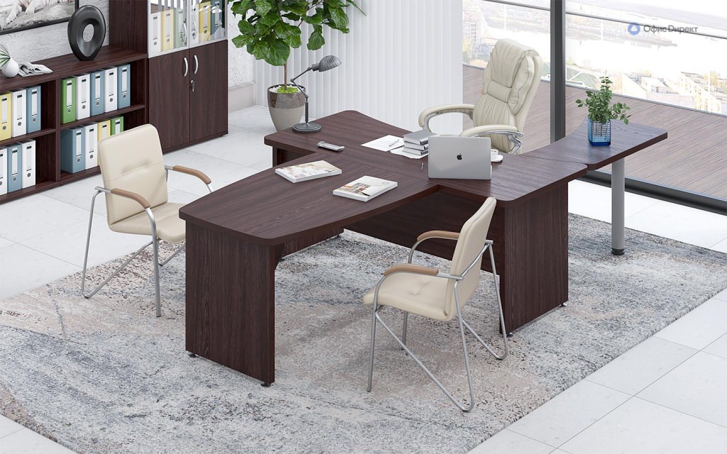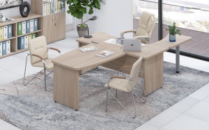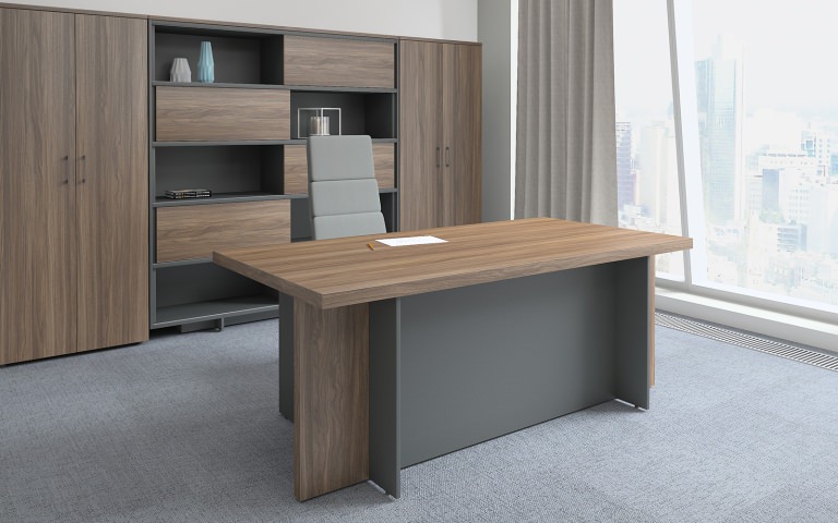Серия Opera Директор создан для тех, кто ценит респектабельность без излишеств. Мебель сочетает современный дизайн и демократичную цену, что делает ее идеальным выбором для офисов любого масштаба. Массивные столешницы, устойчивый металлокаркас, бесшумная фурнитура и логичная организация зон подчеркивают деловой характер серии.