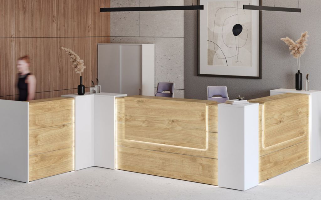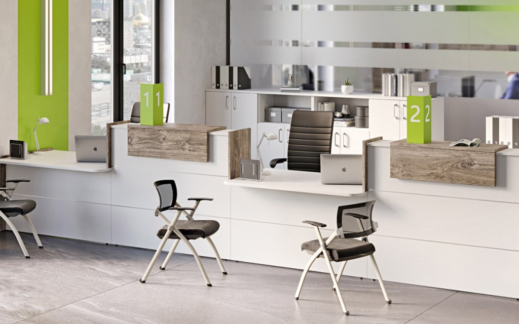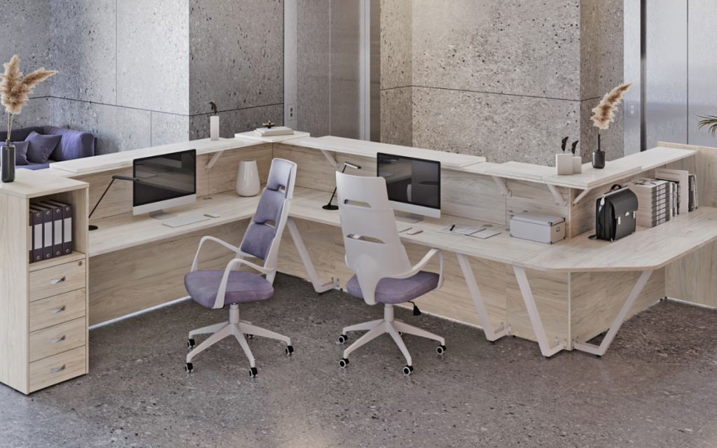 Первое впечатление о компании формируется при входе в офис. «Riva Onix Ресепшен» | Рива Оникс Ресепшен – законодатель этого впечатления, где слияние премиальных материалов с функциональной архитектурой создает визитную карточку бизнеса. Модульная концепция позволяет конструировать различные композиции: от строгих прямых линий до эргономичных угловых решений, подстраиваясь под особенности пространства холла.